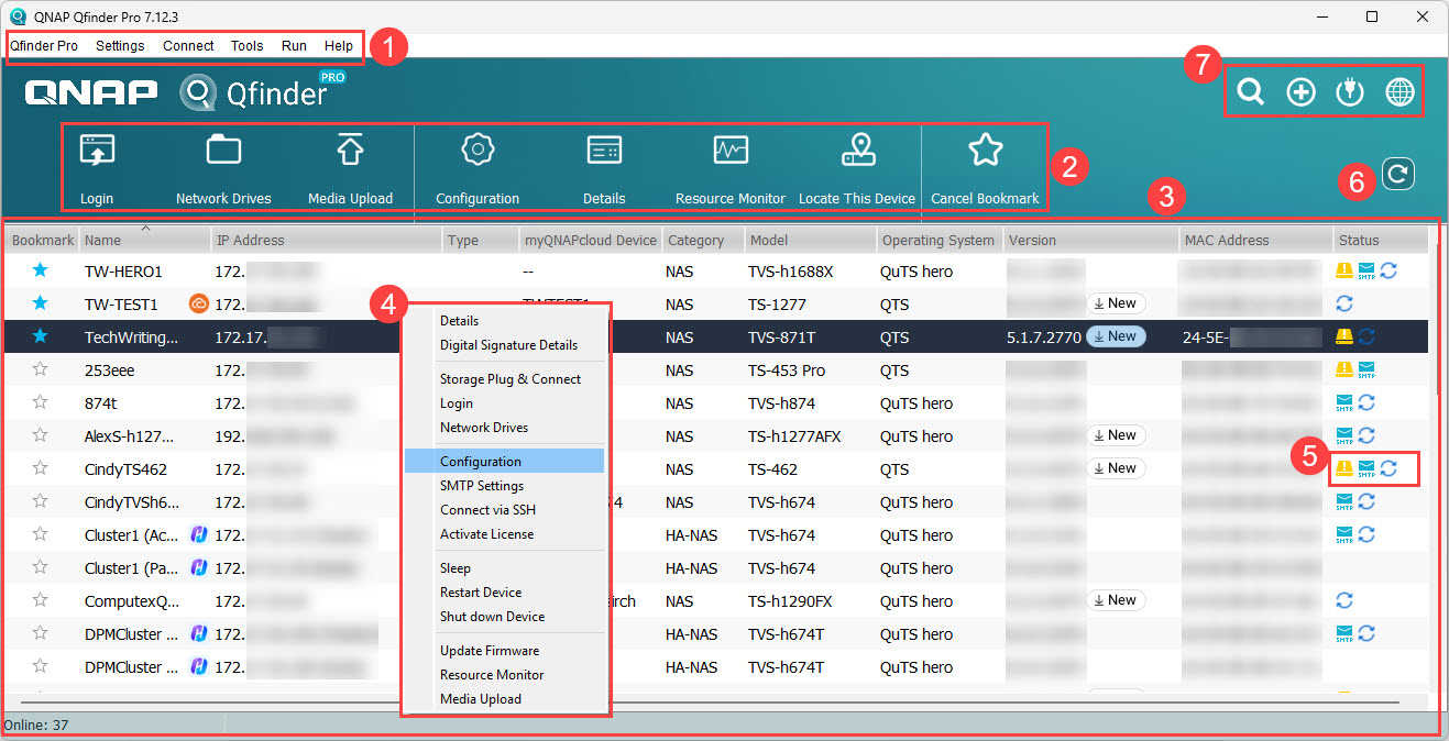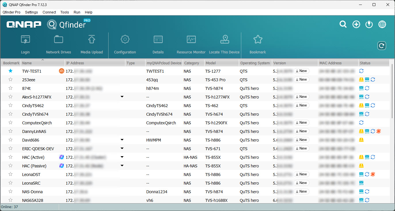 您可以在 Qfinder Pro 中管理 QNAP 设备的各项功能。主页面上的设备列表将自动列出可在局域网中发现的所有 QNAP 设备。