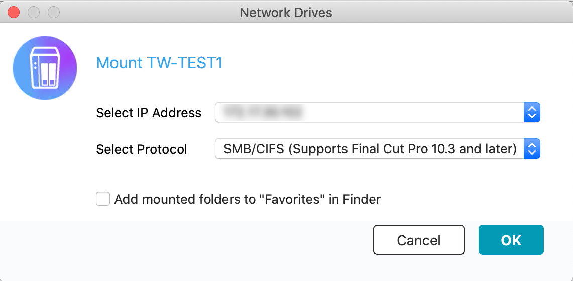 手动将 QNAP 设备添加到 Qfile Pro