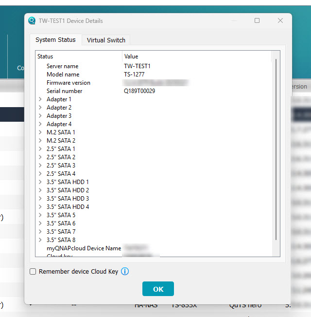 您可以查看有关 QNAP 设备的一些详细信息。
