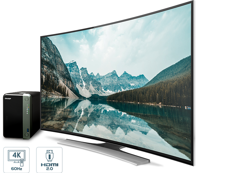 TS-253D 高规提供 HDMI™ 2.0 输出端口,支持 4K (4096 x 2160) @60Hz 的超高分辨率,让您在 HDTV 上观看 4K 高画质内容;支持 4K 影片硬件译码播放与转文件,可实时将影片转文件为可在各装置上顺畅播放的格式。TS-253D 亦支持 DLNA® 和 Chromecast™ 等多媒体串流服务,满足您多样的影音播放需求。您可额外购买 QNAP RM-IR004 遥控器,搭配 QButton 应用弹性客制遥控器按键功能,享受便利的 NAS 数字生活体验。