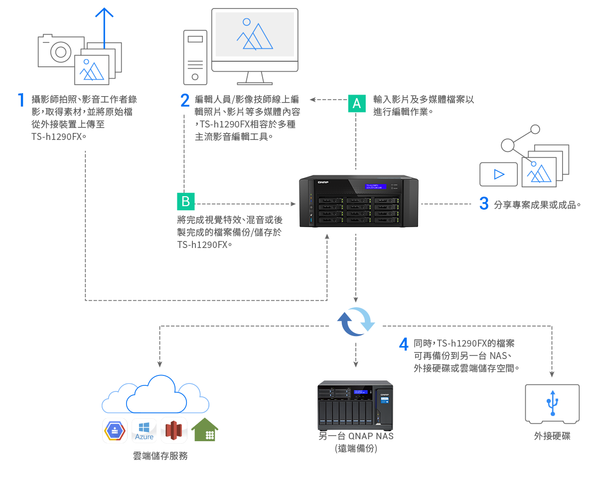 TS-h1290FX 支持跨平台编辑,并兼容于业界领先的影音编辑应用程序:您可利用 Adobe Premiere、Final Cut Pro X、DaVinci Resolve 享受未曾拥有过的剪辑与后制体验,也可通过 Adobe Photoshop 等 Creative 套件将素材制作成精美影像。面对4K/ 8K 高画质影音趋势,高效能 TS-h1290FX 为您流畅传输影音大文件以及实现多人同时在线编辑,让团队合作无间。无论是编辑照片、平面设计或影片剪辑的需求,TS-h1290FX 一机掌握。