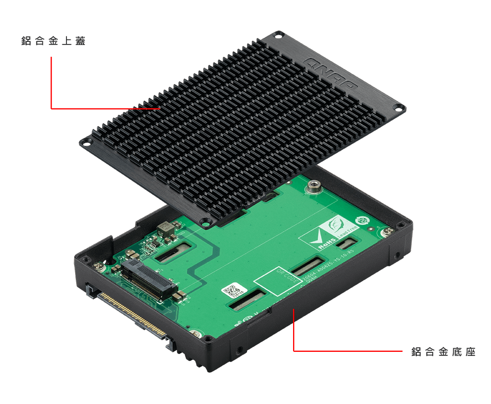 铝合金机身材质更加轻量化,较使用廉价铝板或 SECC 镀锌铜板的产品提供足够 M.2 SSD 散热效果,同时附赠适用单面与双面 M.2 SSD 的散热垫。