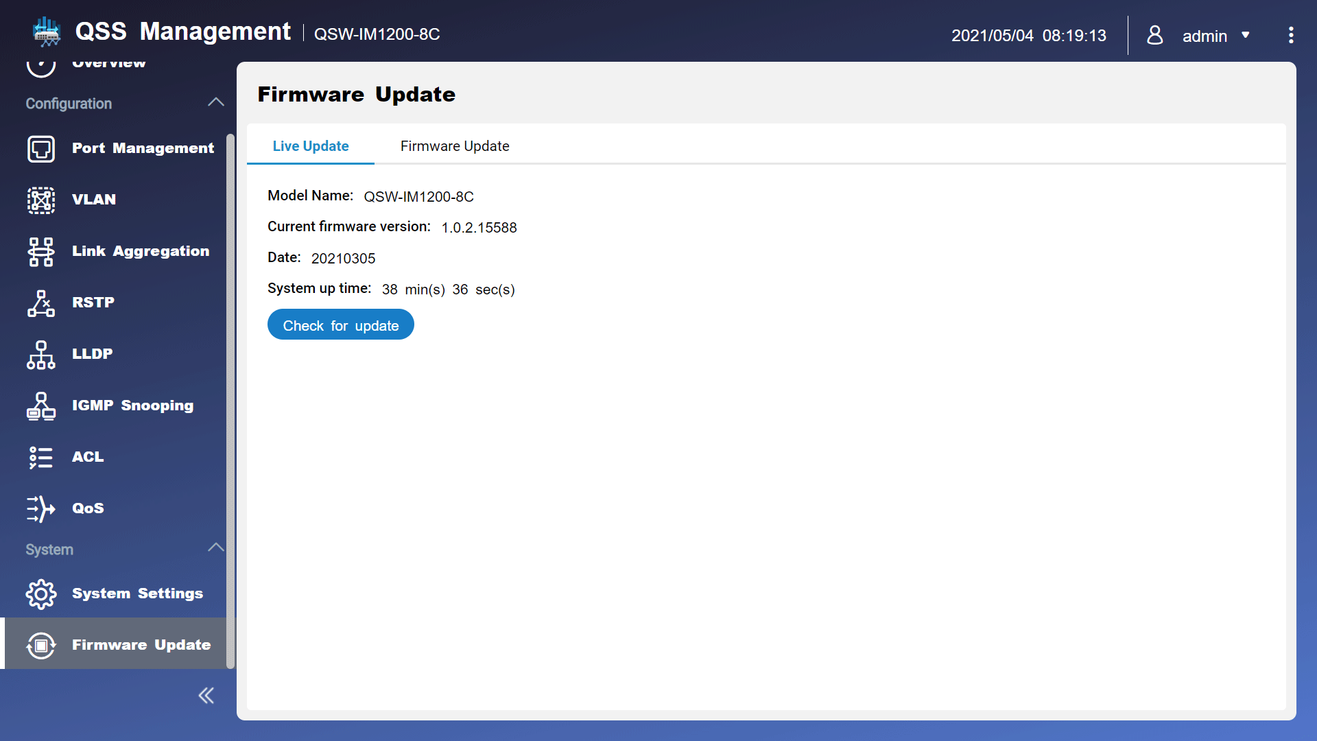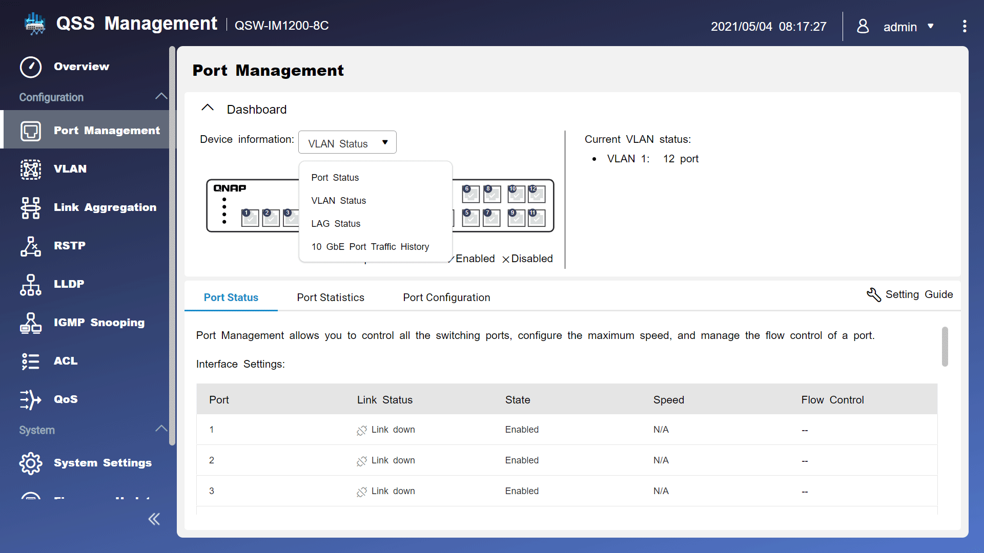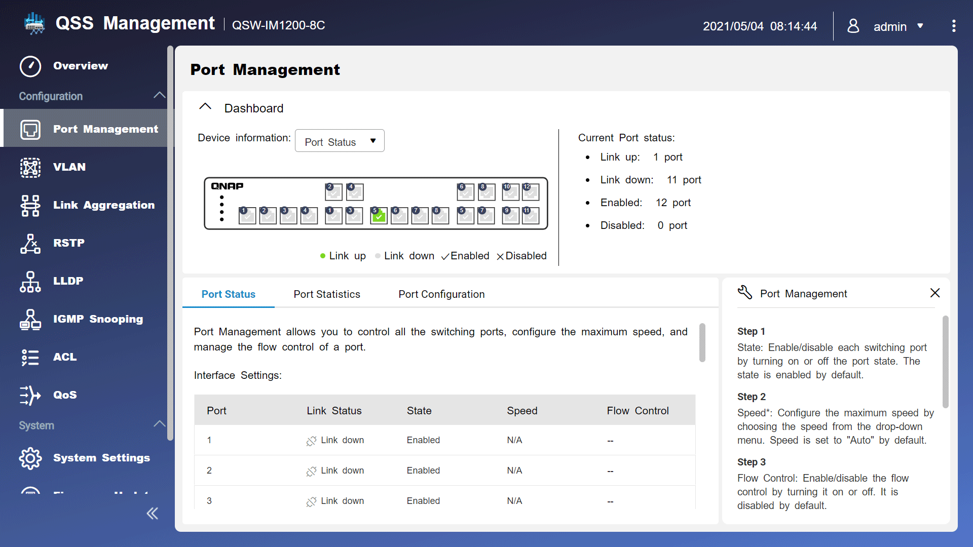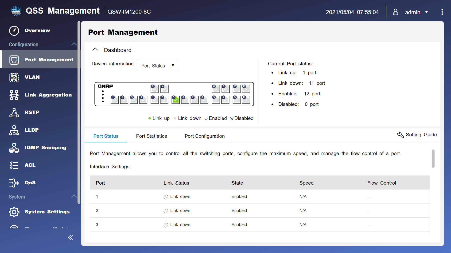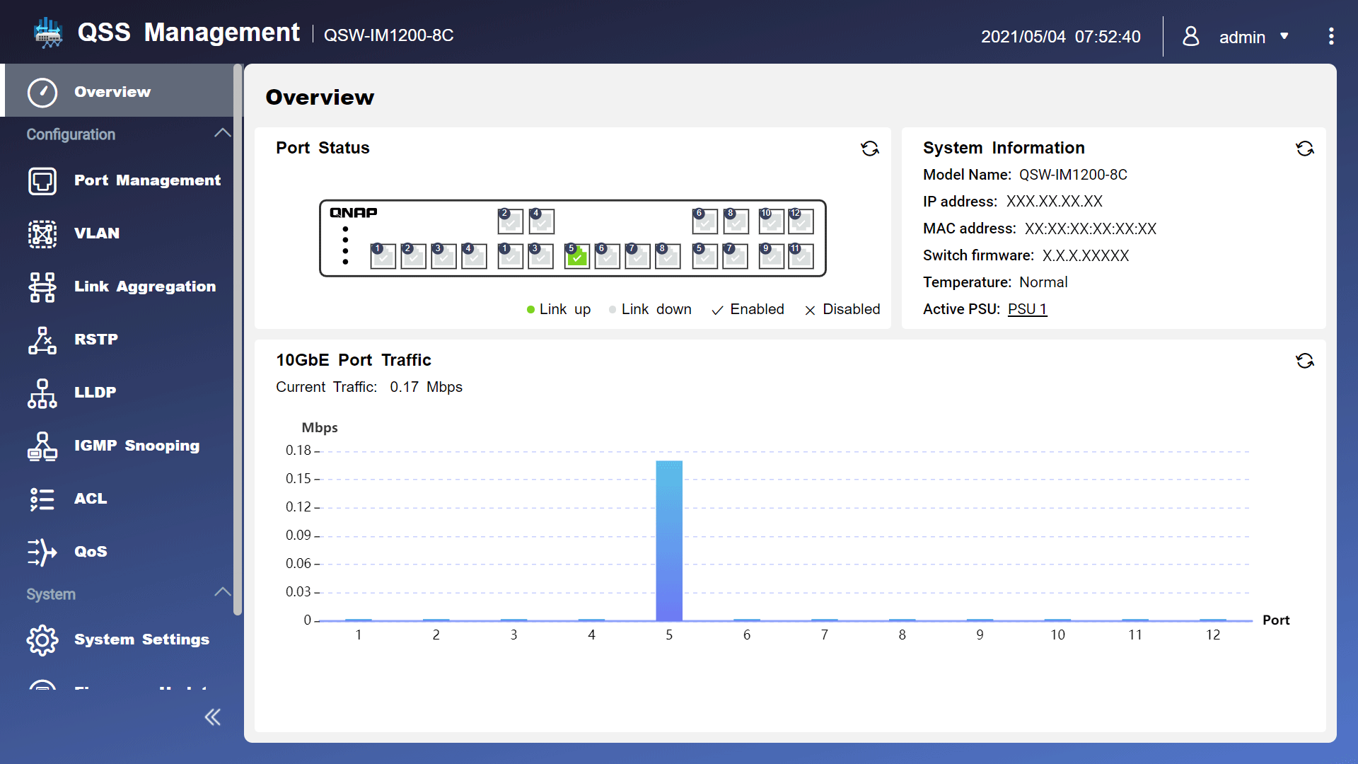 QSW-IM1200-8C 搭载 QNAP Switch System (QSS) 系统,提供简洁的图形化 Web 管理接口及实用管理功能,让网络管理变得更加直觉容易。