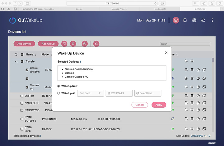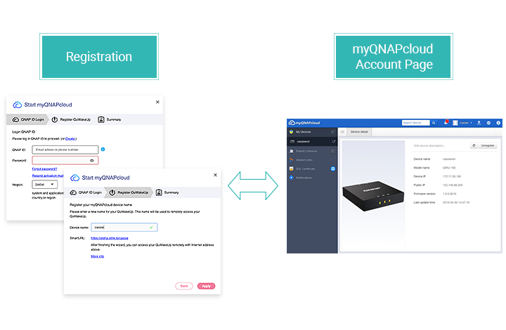 远程唤醒零距离:透过 myQNAPcloud 免费云端整合服务,从因特网就能一次大量唤醒多项设备,您只需要拥有一组 QNAP ID 并将装置注册于账号下,即可使用 SmartURL 远程联机至区网内的 QWU-100,随时随地掌握设备状态。