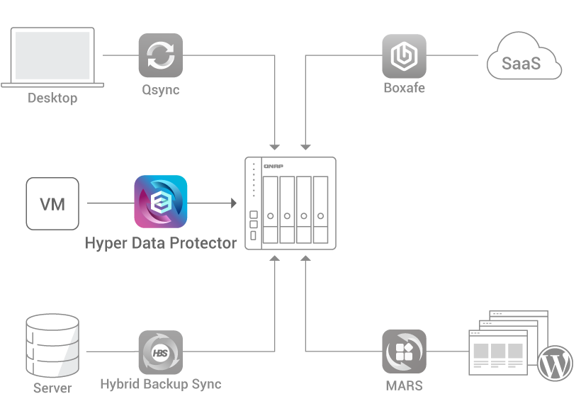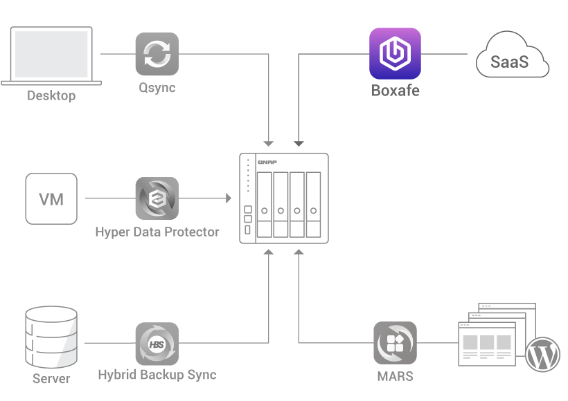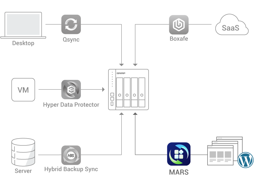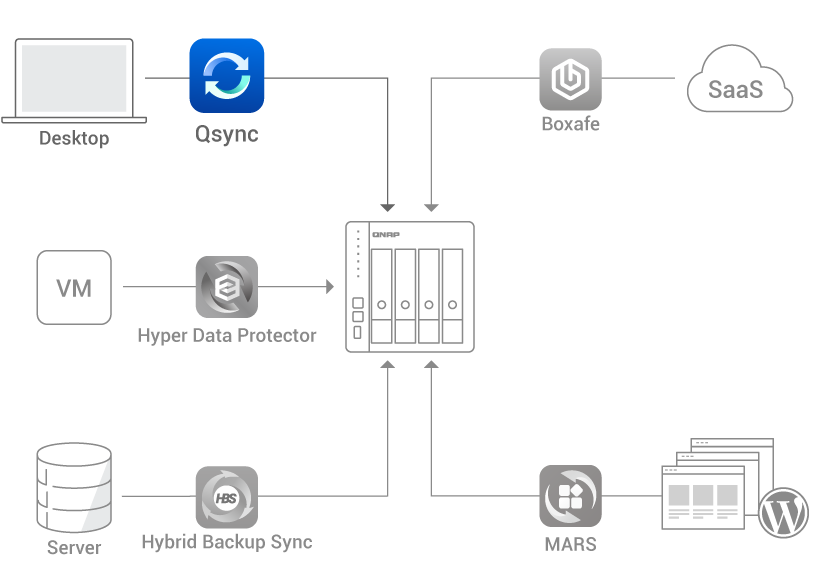 您可使用同步软件 Qsync 将计算机文件同步备份到 NAS。Mac 计算机也可支持 Time Machine 服务。