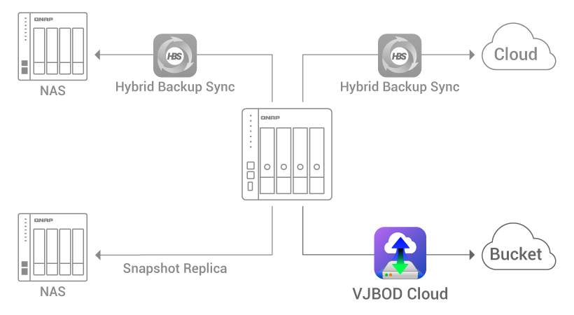 VJBOD Cloud 可连接云端对象存储空间 (Bucket),并将 NAS 的数据同步备份上云。