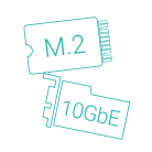 M.2 PCIe (Gen 3 x2, 2 GB/s) NVMe SSD 双插槽,可作为快取应用或配置高速储存池,提升档案存取效率。