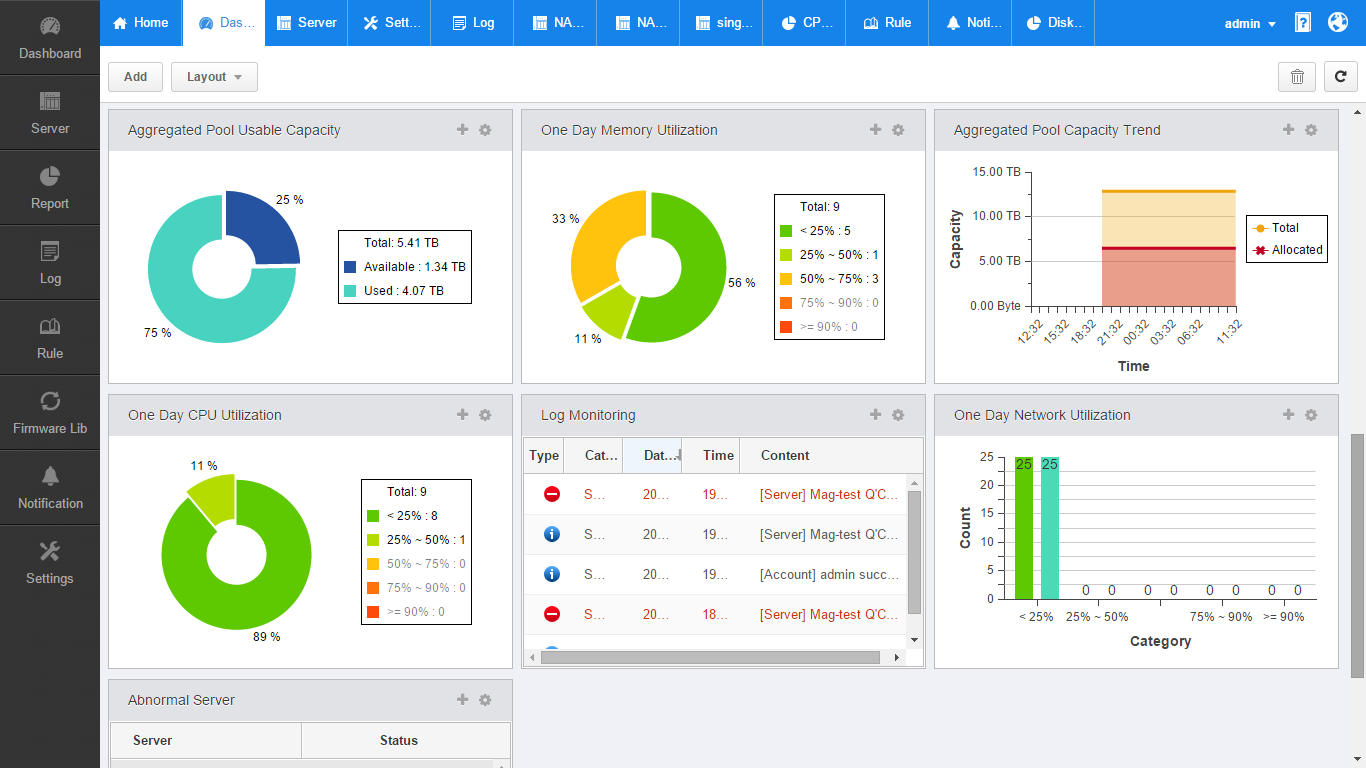 企业环境往往配置多台 NAS 作为文件存储、备份、分享与虚拟化应用的存储系统,能够实时掌控所有 NAS 的系统状况、有效率地进行系统更新及故障排除,至关重要。然而,要维持有效率处理这些持续性的任务实为不易。面对这么多台 NAS,每一次都得耗时一一登入来设定处理。有了 Q’center,这些管理和维护工作将被大幅简化,通过一个操作简单及客制化的管理平台,所有任务都可迅速完成。