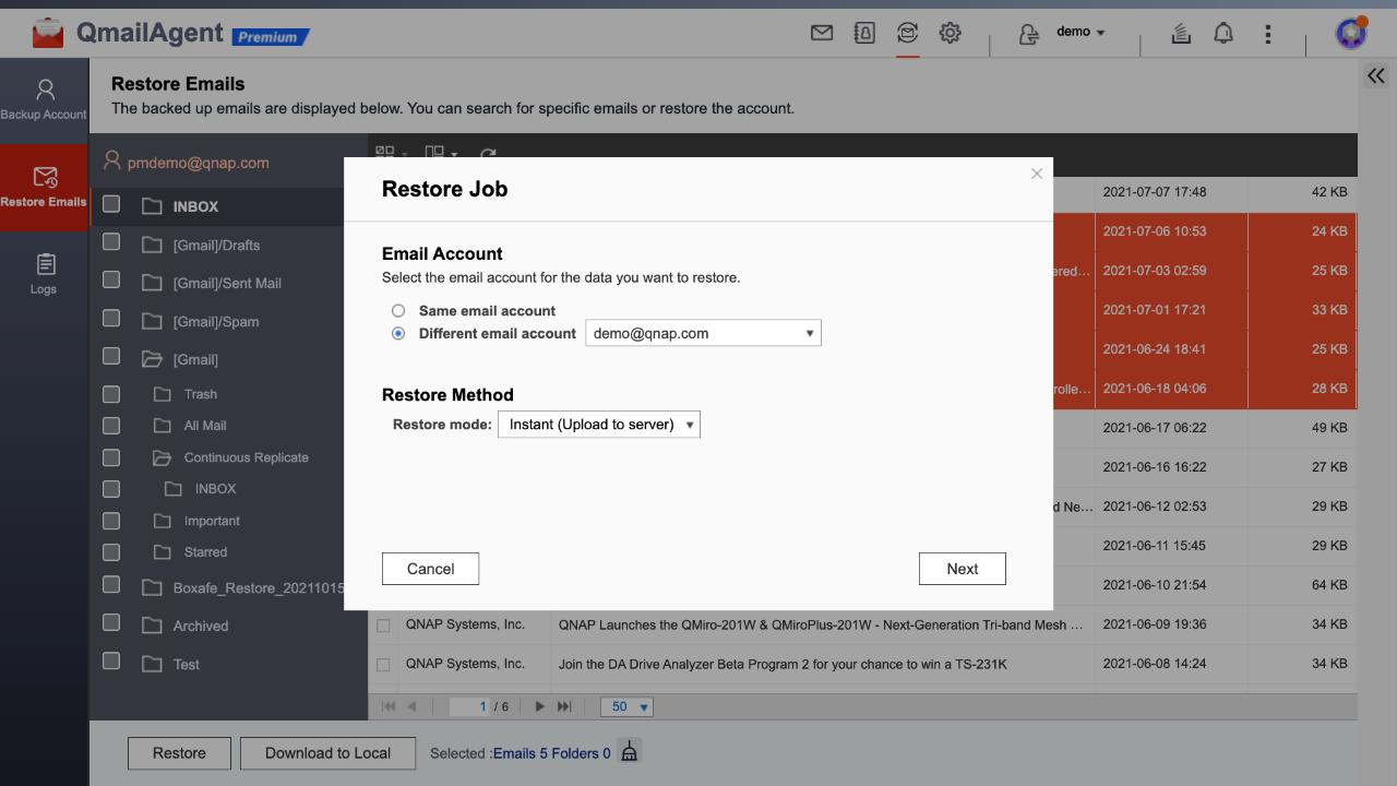QmailAgent Premium 授权提供电子邮件与帐户二次备份,支持备份 A 邮件账户至 B 邮件账户,邮件管理更有效率。