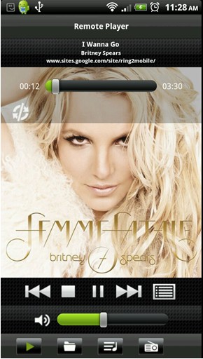 音乐播放时,歌曲曲目、艺人名称、专辑名称,及音乐类别皆清楚地显示于操作页面上。使用者可选择随机或连续播放。