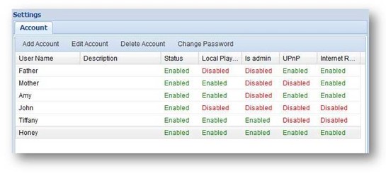Turbo NAS用户可以将音乐收藏分享给高达1,024个亲朋好友。设定非常弹性化,只要在网页接口上用点选的方式,就可以决定要开放哪些音乐服务给个别的分享对象。可设定的项目包括音乐播放、UPnP设备串流、网络电台串流等等。