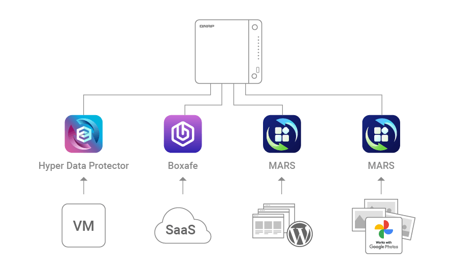 提供安全可靠的存储方案,完善备份您的所有数据;也可运行多台虚拟机与软件容器,发挥更多元的应用潜力。