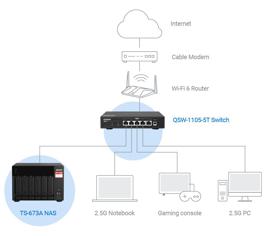 QNAP 协助您快速升级家中或办公室的高速网络与数据存储中心,有感体验更高速的全 2.5G 网络性能。