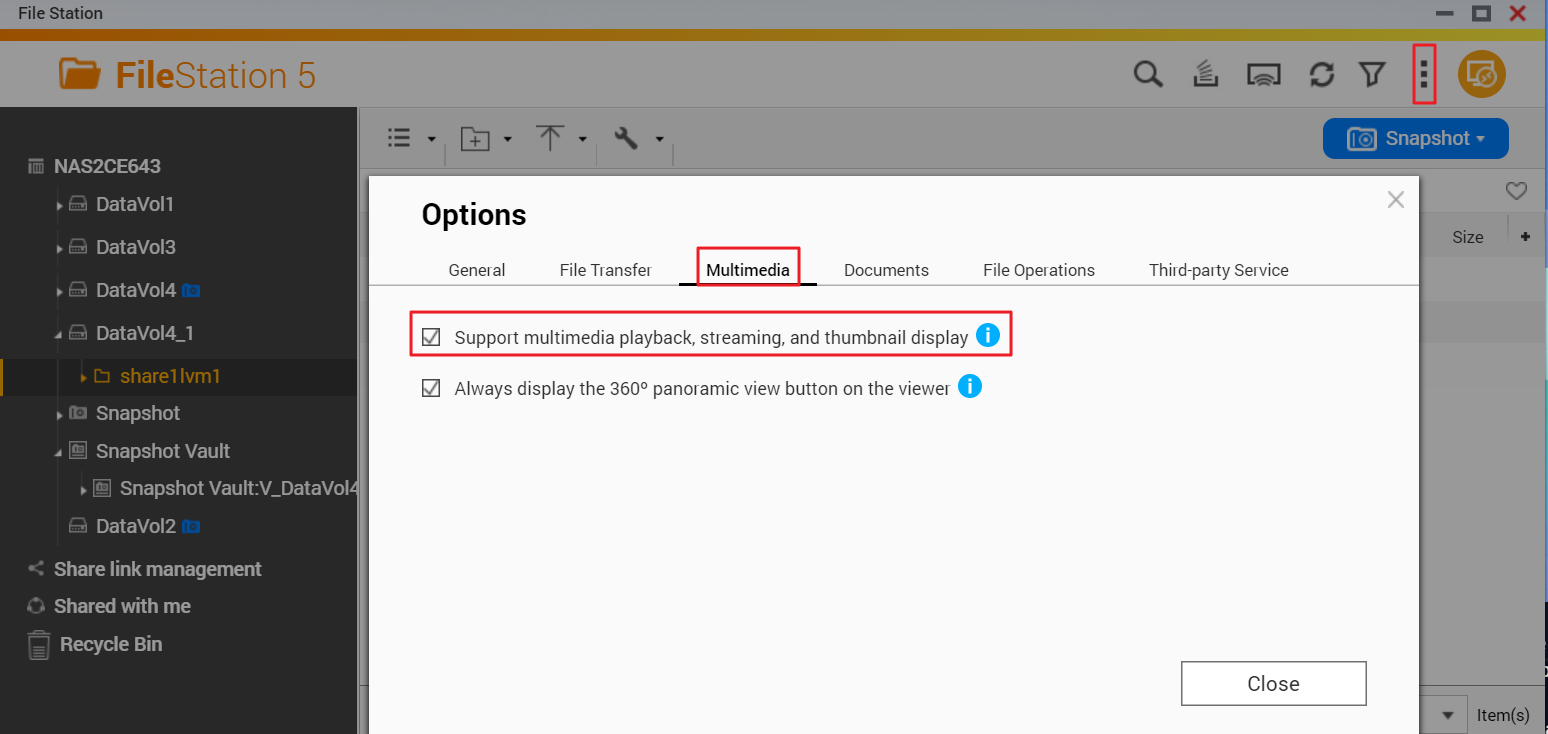 必须在 File Station 中安装 Multimedia Console 并配置多媒体设置,以启用此选项。