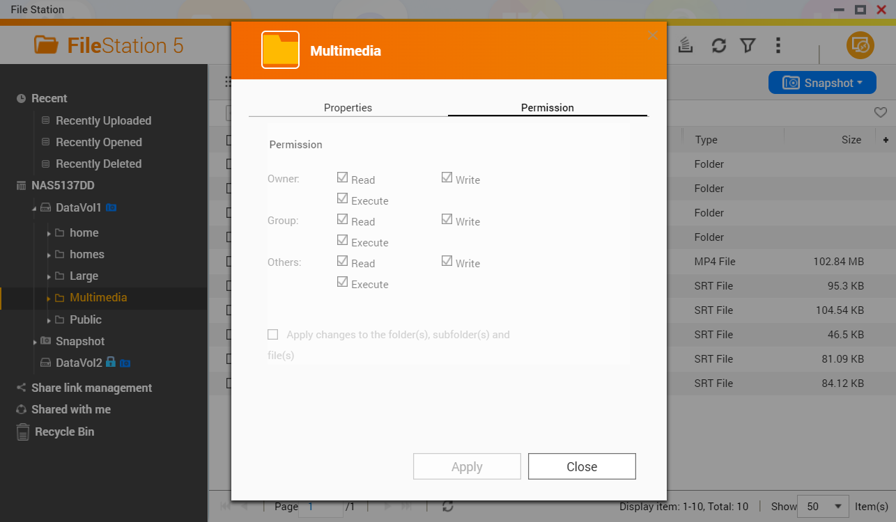 尝试通过 File Station 配置共享文件夹权限时,一些属性和权限会显示为灰色,您无法选择这些选项。