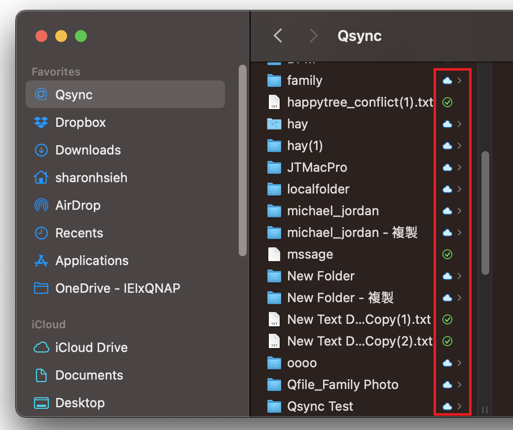 完成以上步骤后,Qsync 状态图标即会出现在 macOS 访达中的文件和文件夹上。