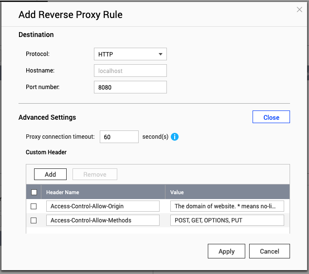 更改 Web 服务器的默认设置是解决此问题的一种方法,但从 QTS 5 起,还可以定义反向代理设置以修复 CORS 问题。