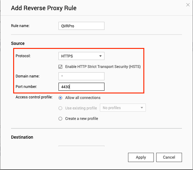 - 为了增强访问安全性,请设置额外的访问控制规则,用于允许单个 IP 或某个 IP 范围以防止未知主机意外连接到此反向代理。