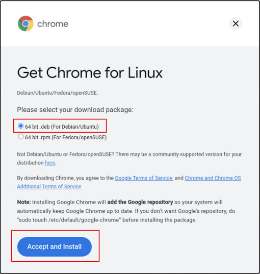 此时会打开“Get Chrome for Linux”(获取 Chrome for Linux)。