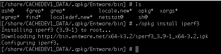 # cd /share/CACHEDEV1_DATA/.qpkg/Entware/bin - 运行以下命令以安装 iPerf3:*# ./opkg install iperf3