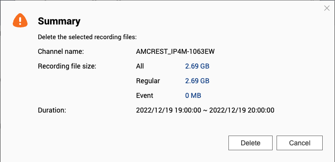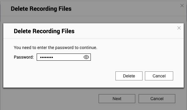 6. 输入密码,然后单击“Delete”(删除),开始删除录像文件任务。