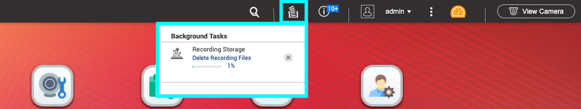 7. 此时即开始“Delete Recording Files”(删除录像文件)任务。可以在“Background Tasks”(后台任务)中监控此任务的进度或取消此任务。