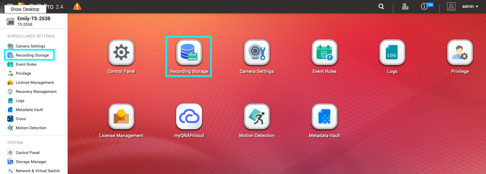 1. 打开“Recording Storage”(录像存储)。