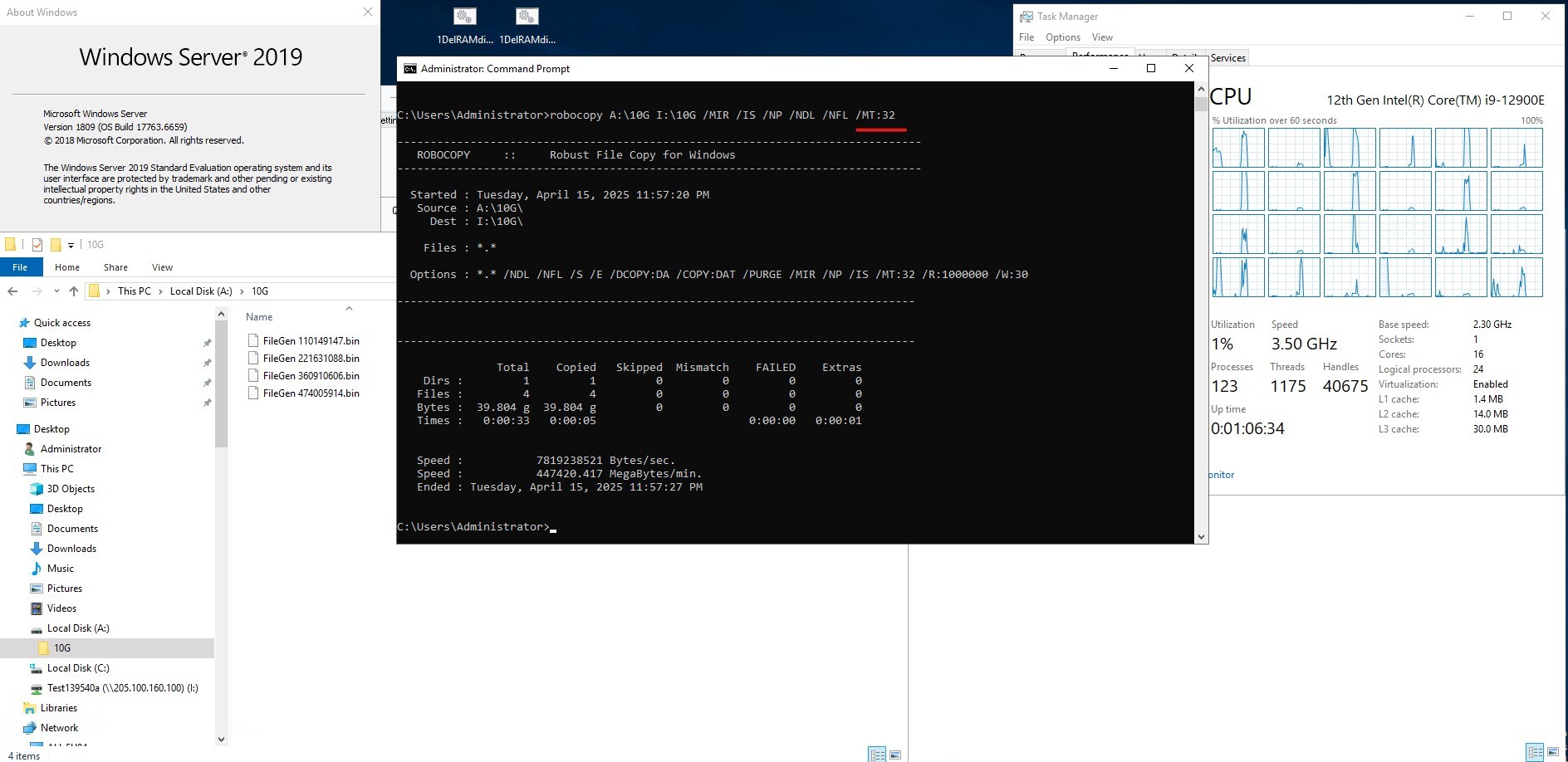 Windows File Explorer and Robocopy using single thread with limited performance.