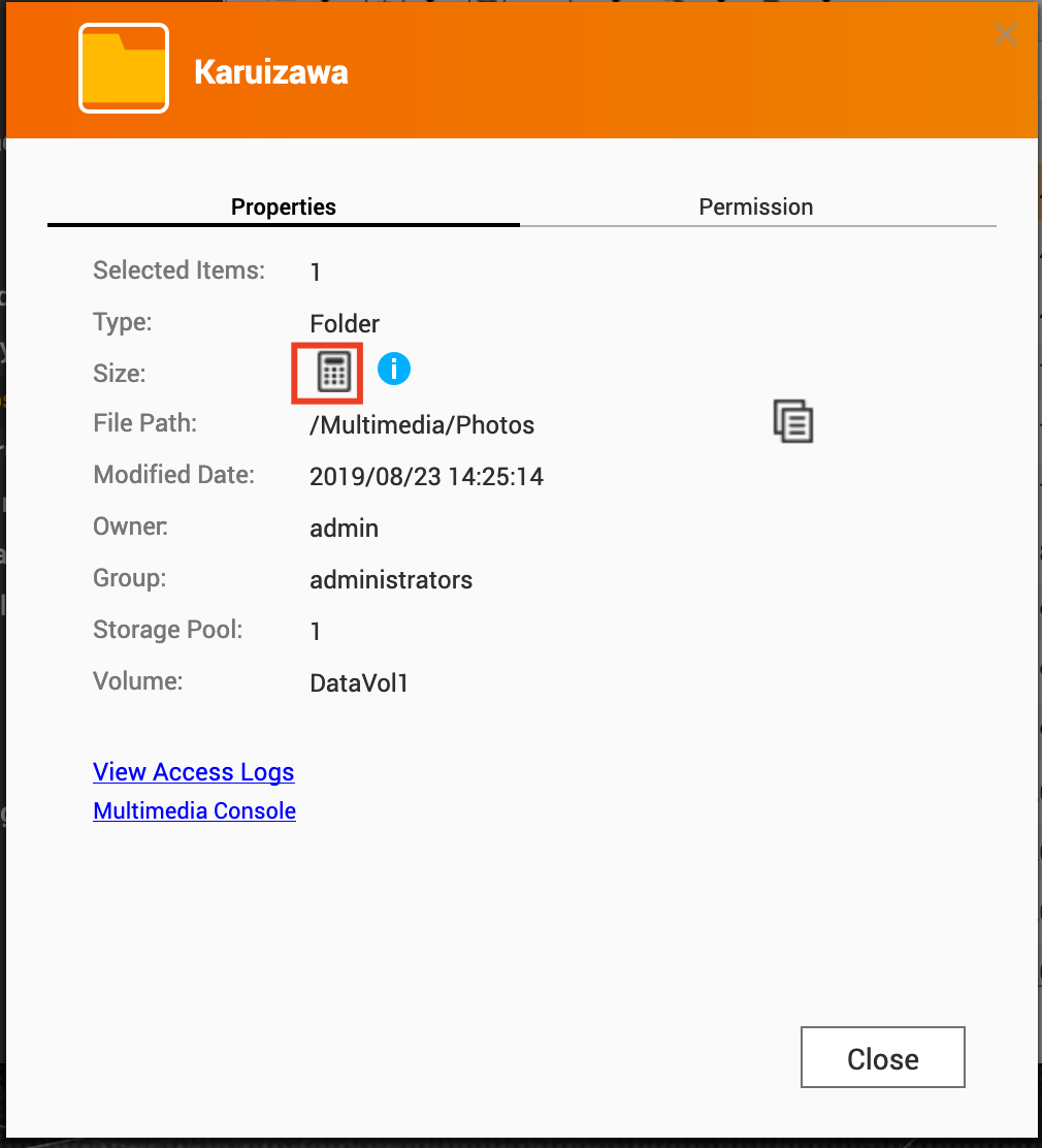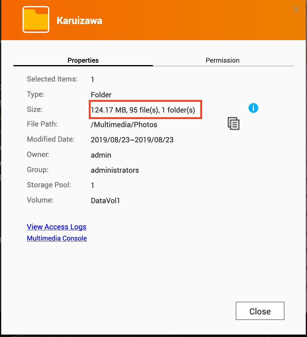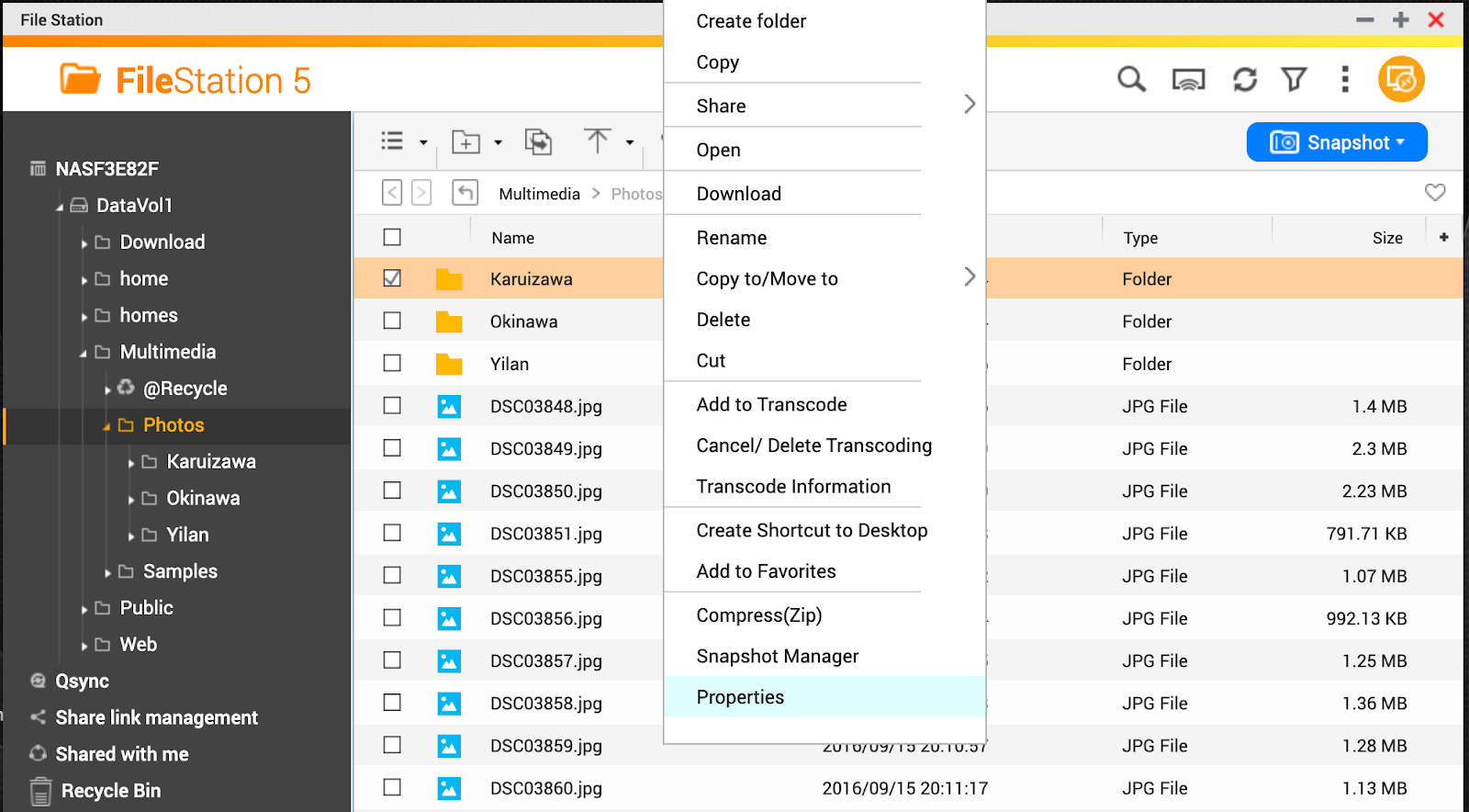 1.In File Station,right click on a folder you would like to know the size and select Properties at the bottom of the list.