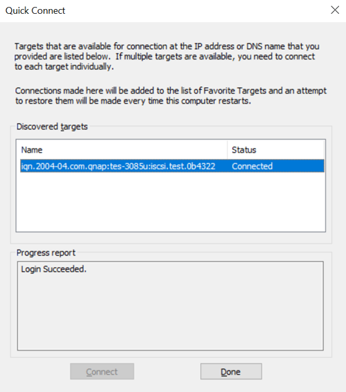 Connecting to an iSCSI target using Microsoft iSCSI initiator in Windows