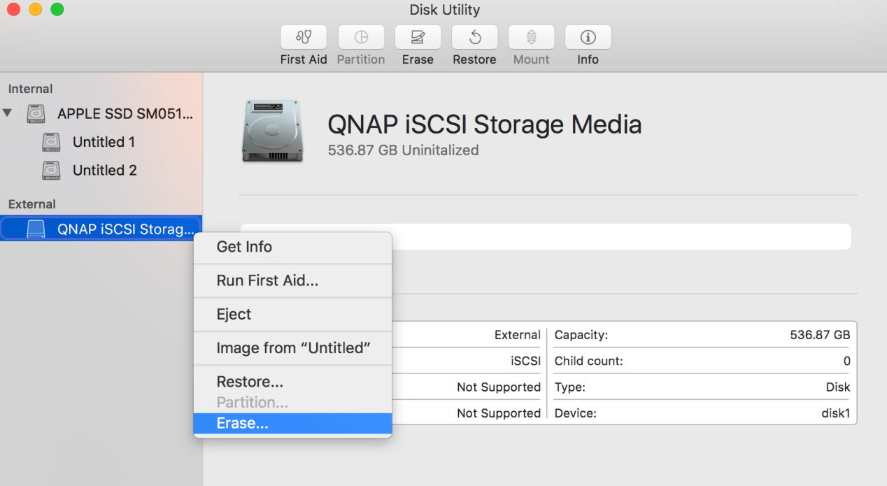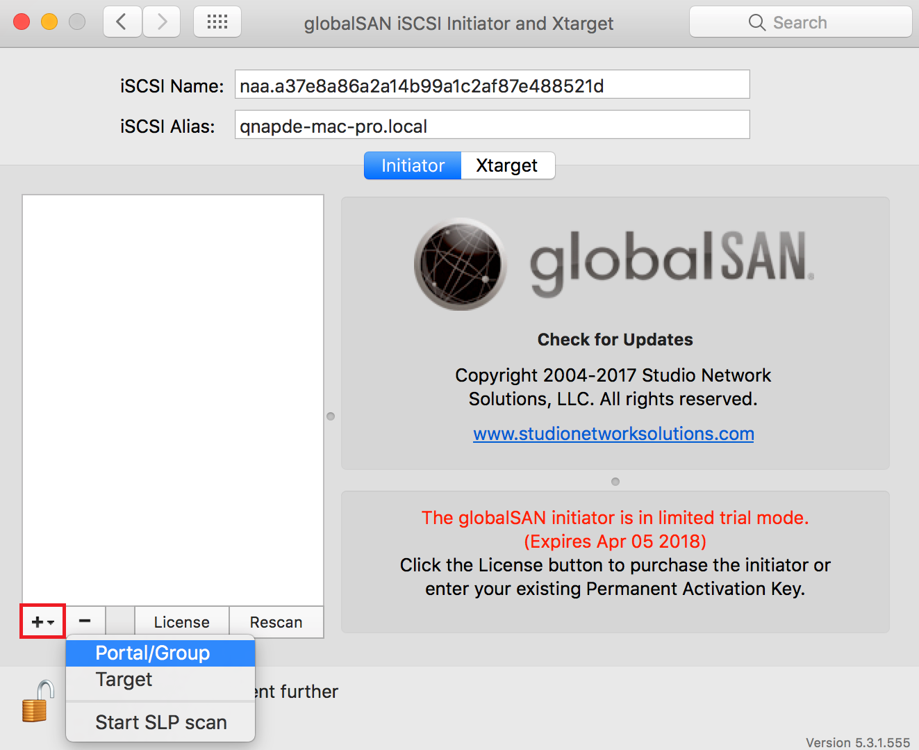 Mac OS does not include an iSCSI initiator client by default. You will need to install third-party iSCSI initiator software to connect the iSCSI target on your QNAP NAS. For this tutorial we will use GlobalSAN iSCSI Initiator.