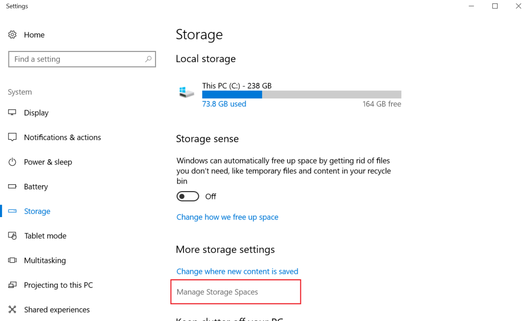 2. Click Manage Storage Spaces.