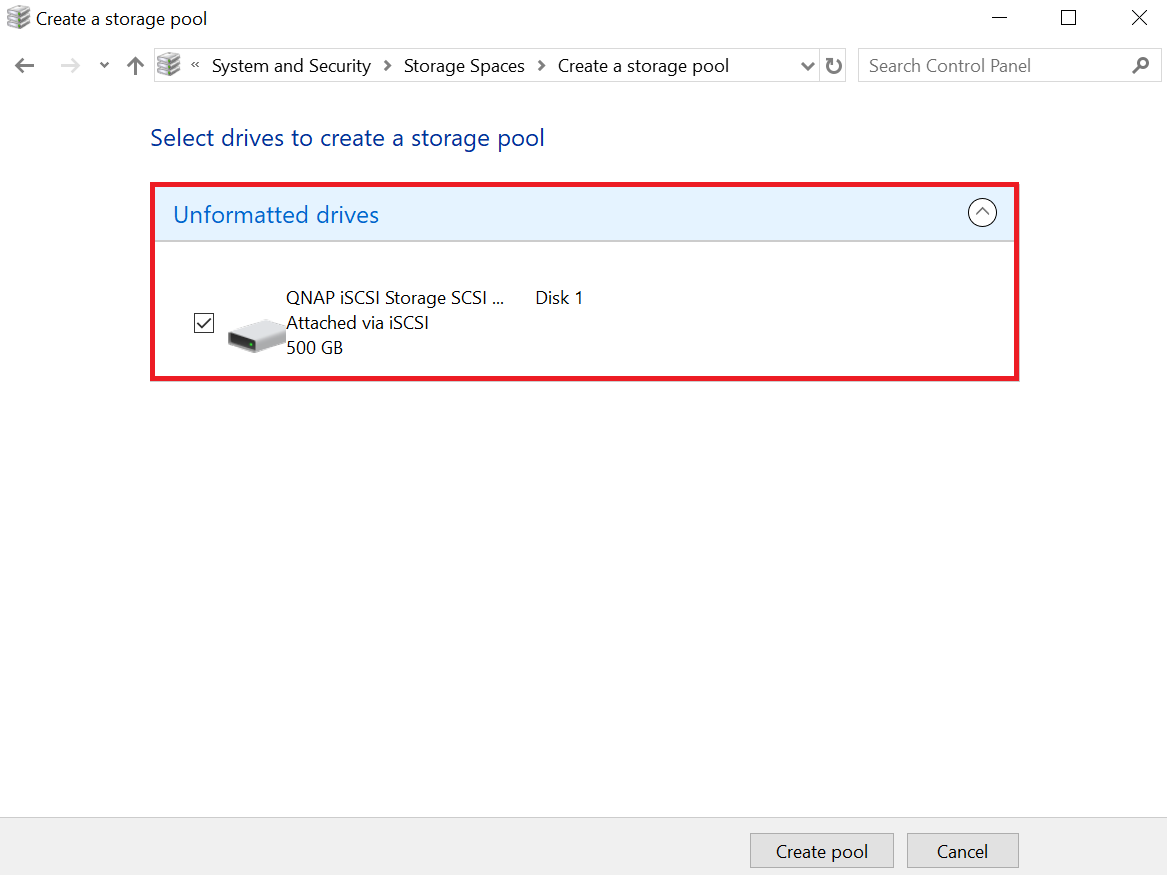 4. Select one or more iSCSI LUNs, and then click Create Pool.