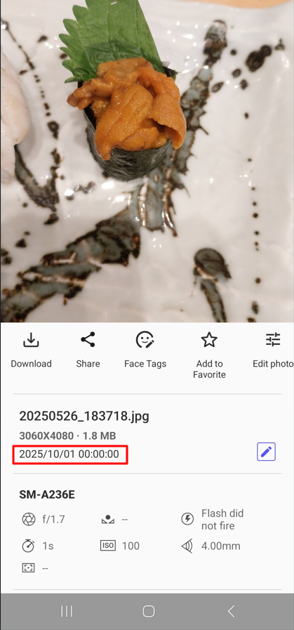 - 如果您没有看到编辑日期和时间选项,请确保您的 QuMagie 移动应用已更新到全新版本。