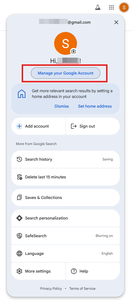 - 点击管理您的 Google 账户。