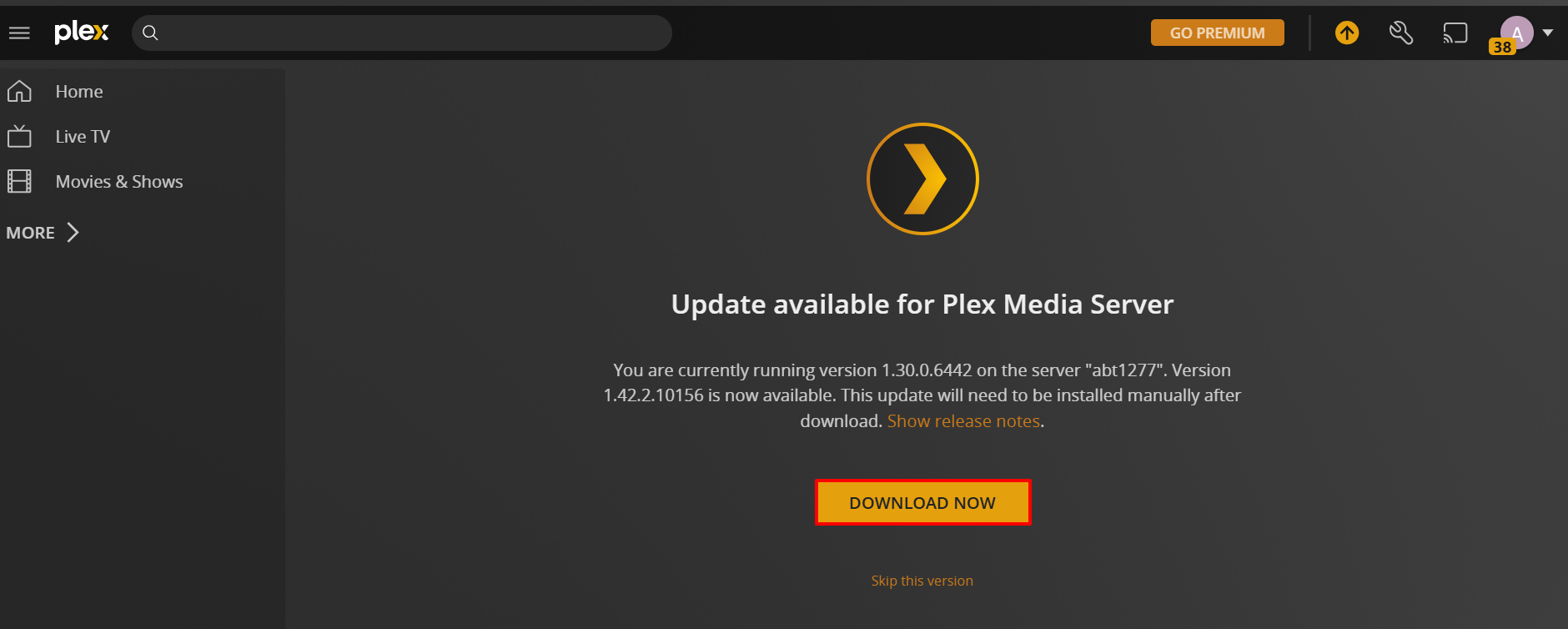 - The Plex Media Server update is complete.