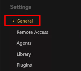 您可以通过首先打开 Plex Media Server 来确保您已安装全新版本或手动检查任何更新。完成后,选择窗口右上角的扳手图标。现在向下滚动左侧列到设置标题,并点击常规。
