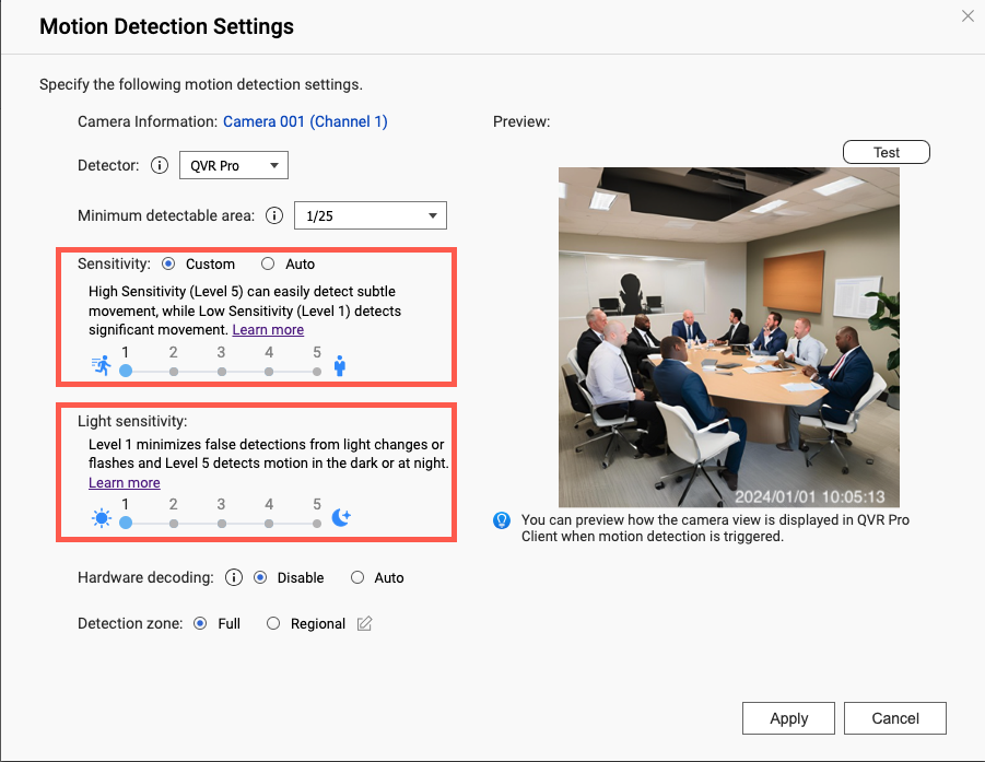 Sensitivity (Custom mode): High sensitivity allows you to easily detect subtle movements, whereas low sensitivity only detects significant movements.