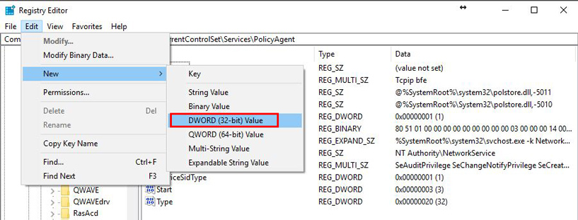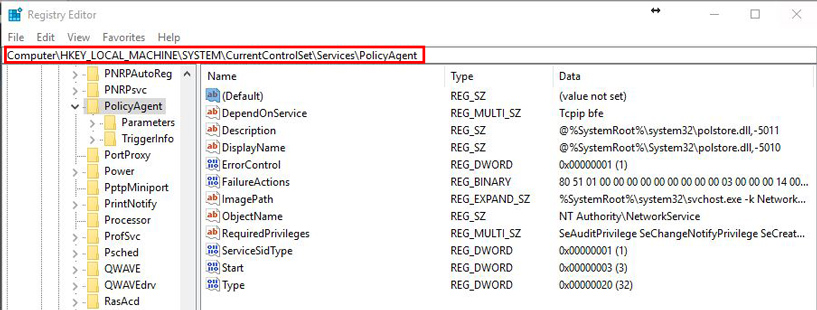 HKEY_LOCAL_MACHINE \ SYSTEM \ CurrentControlSet \ Services \ PolicyAgent