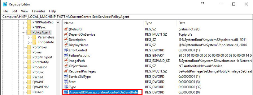 Name this value “AssumeUDPEncapsulationContextOnSendRule” and hit Enter.
