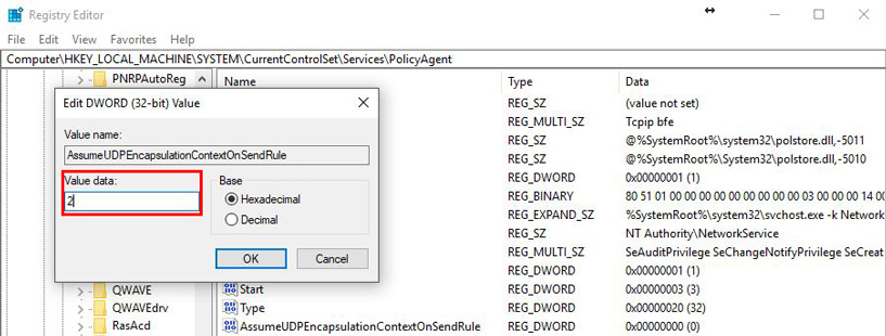 How to fix the issue of Windows 10 not connecting to IPSEC/L2TP VPN servers