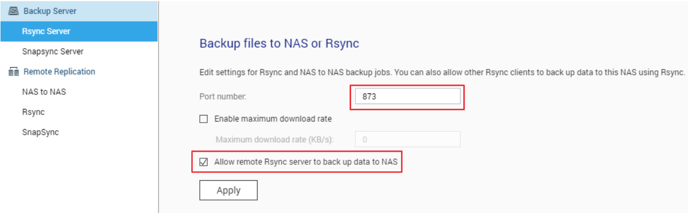 a. In Backup Station >> Backup Server >> Rsync Server, make sure the port 873 is configured.