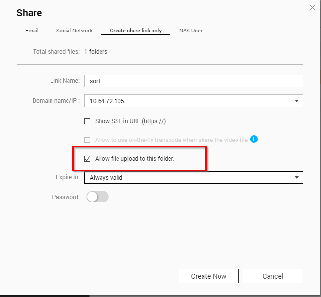 When creating a shared link to a folder with the ability to upload files, It is possible to block access to the same shared folders?