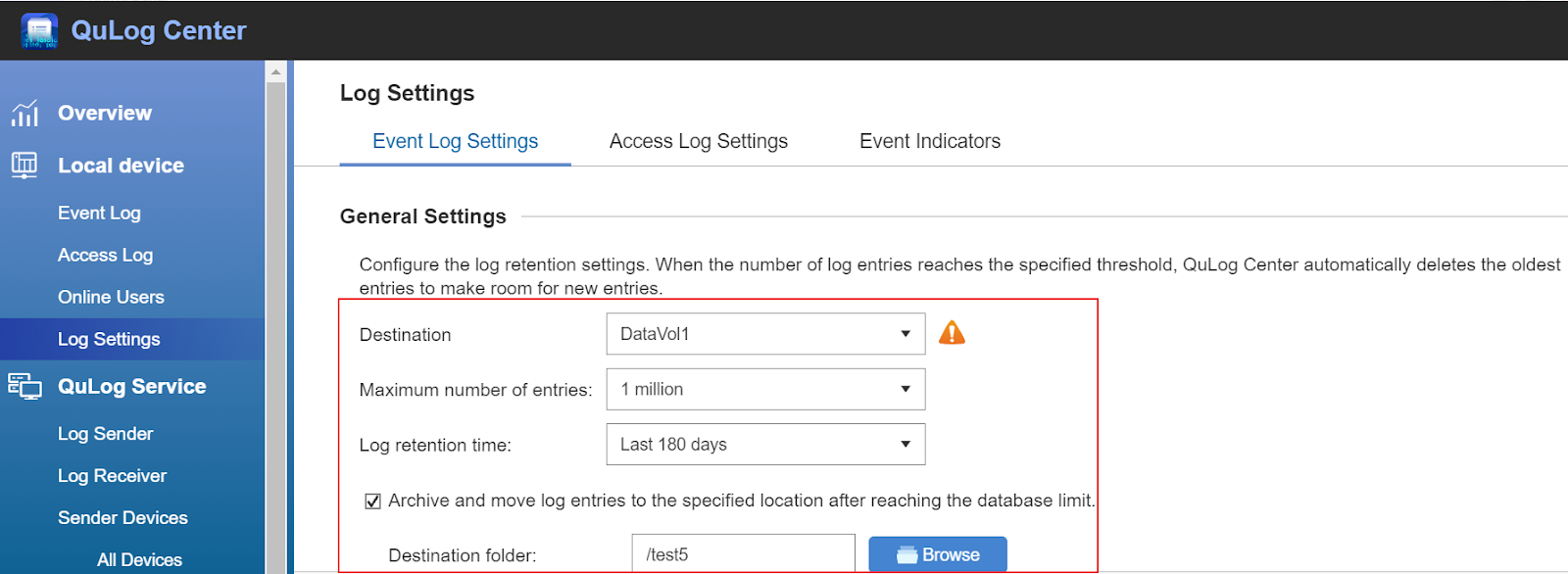 You can find the log retention settings page in QuLog Center as below screenshot.