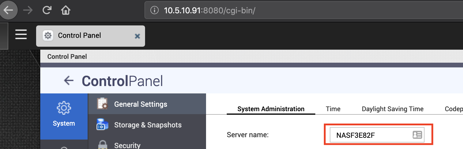1.On NAS, please check Server name of your NAS by Control Panel > System > General Settings > System Administration,