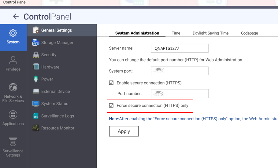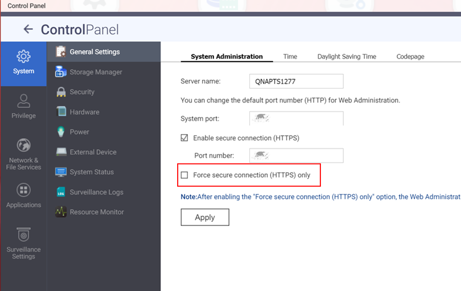 - 摄像头连接后,启用“仅强制安全连接 (HTTPS)”选项。