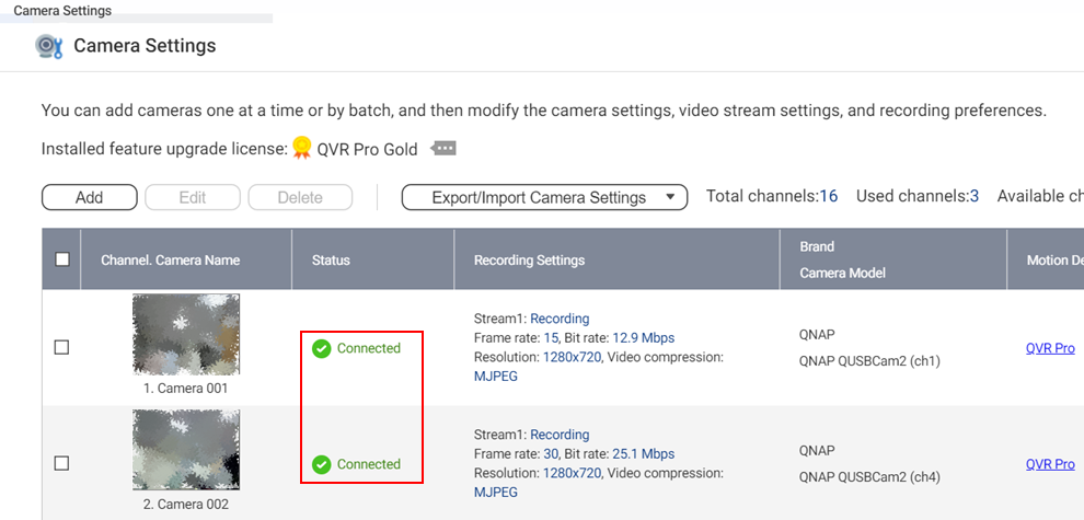 - 刷新页面并等待 QVR Pro 重新连接到 USB 摄像头。