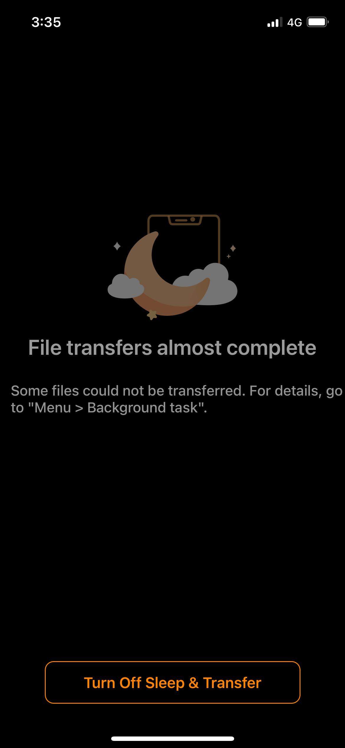 您可以使用睡眠与传输模式来完成上传/下载任务。此模式会将 Qfile Pro 保持在前台运行,同时将屏幕亮度设置为最低以节省电池。