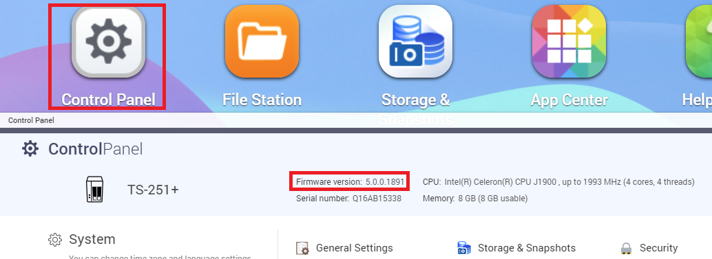 To confirm which firmware version your NAS is on, you can see this from the top of the NAS Control Panel window.