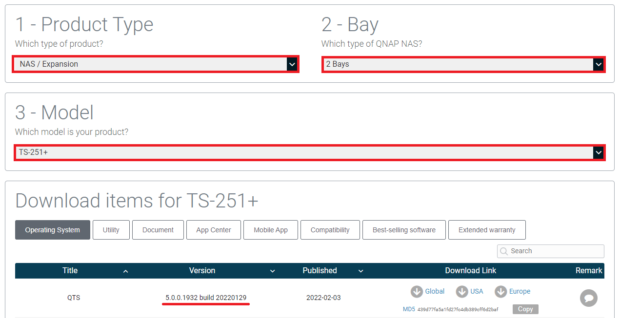 If you receive the above notification from Malware Remover application, you can download the latest firmware version by clicking your NAS model in the above table or from our Download Center. Find your NAS model by selecting product type "NAS / Expansion", then your NAS type and model.